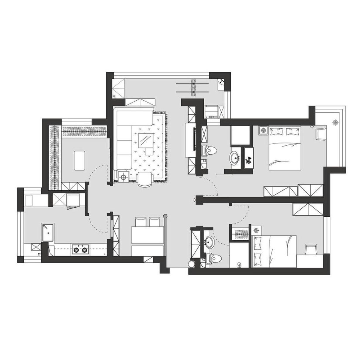 楼盘:绿城沈阳全运村 户型:三居 面积:125㎡ 风格:美式
