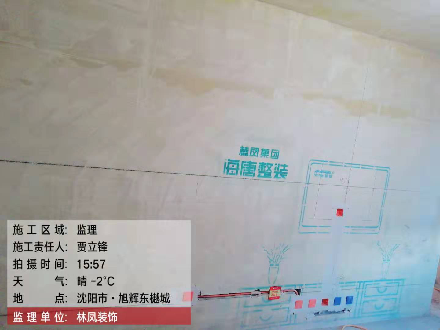 现在是房子装修的水电阶段,全房360放线完成,使房主在装修之前就直观的看到房屋的整体摆设效果,开关面板等高等距符合公司标准。